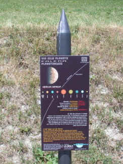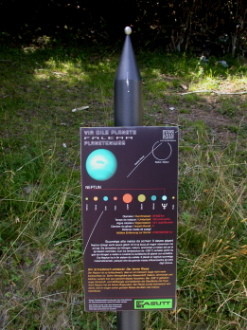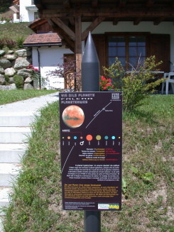 Unterwegs sind die Sonne sowie die neun Planeten als Skulpturen dargestellt. Hier entspricht der Massstab jedoch 1:2 Milliarden; das heisst, die Himmelskörper wurden – verglichen zur Distanz – doppelt so gross dargestellt.