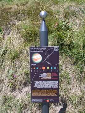 Auf dem 1,5 Kilometer langen, gut ausgebauten Weg legen Sie die Strecke vom Fixstern Sonne bis zum Planeten Pluto zurück. Dies entspricht der Distanz von ca. 5,9 Milliarden Kilometern oder einem Massstab von 1:4 Milliarden. Das heisst, mit jedem Meter auf dem Planetenweg würden Sie im Universum 4 Millionen Kilometer zurücklegen.